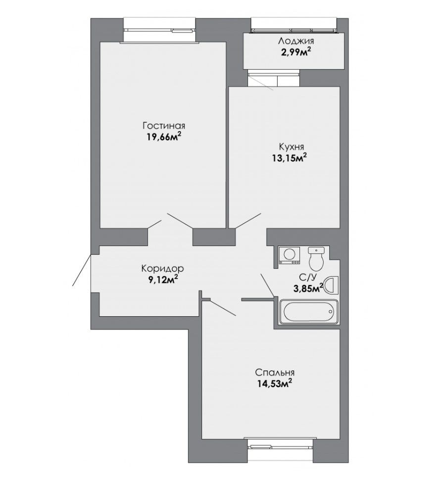 Двухкомнатная квартира 62.6 м2