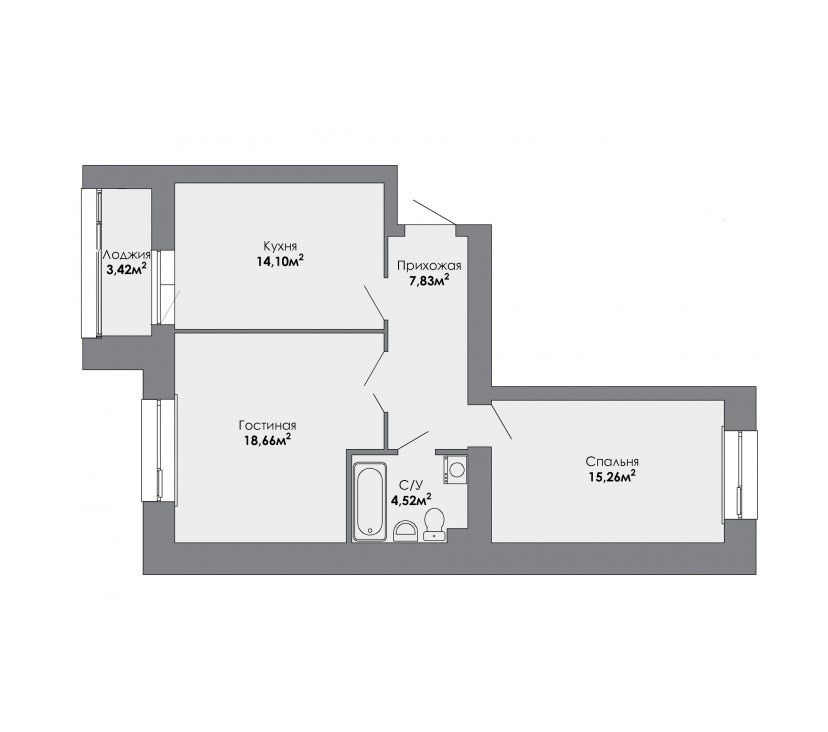 Двухкомнатная квартира 62.9 м2