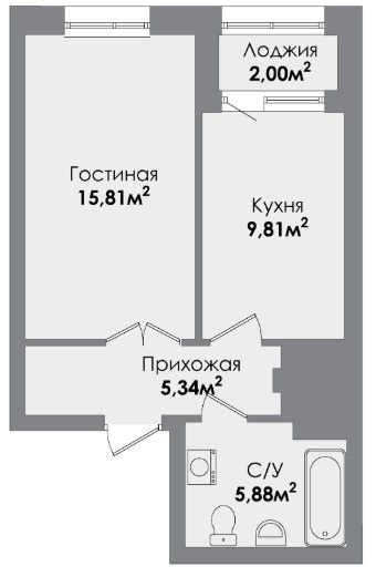 Однокомнатная квартира 38.11 м2