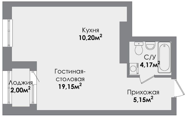 Однокомнатная квартира 40.17 м2