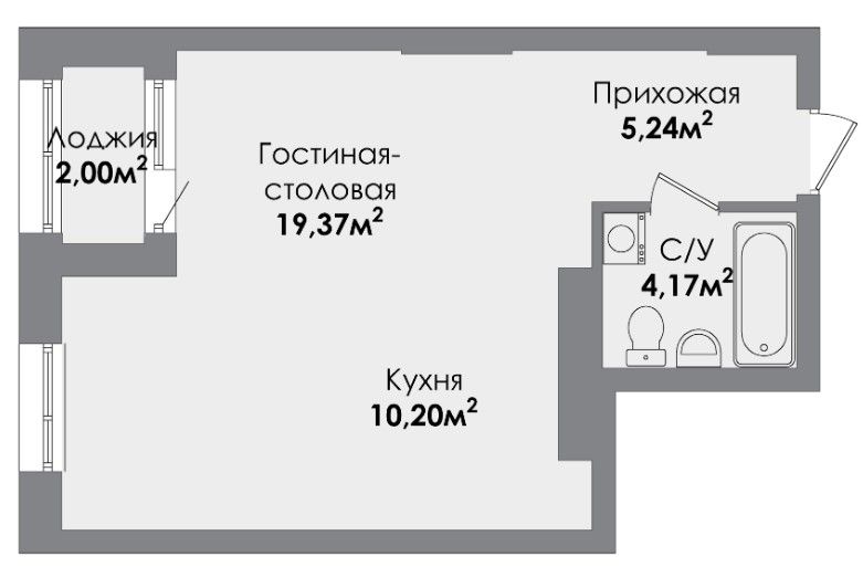 Однокомнатная квартира 40.48 м2