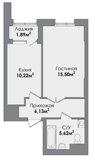 Однокомнатная квартира 38.89 м2