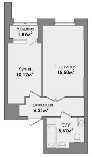 Однокомнатная квартира 38.97 м2