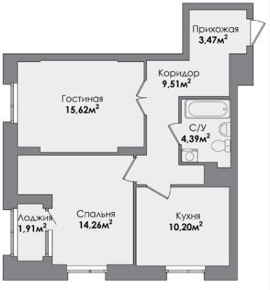 Двухкомнатная квартира 58.88 м2