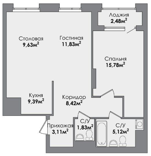 Двухкомнатная квартира 66.13 м2