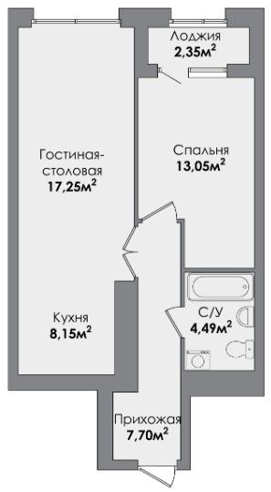 Двухкомнатная квартира 52.4 м2