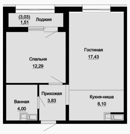 Двухкомнатная квартира 45.92 м2