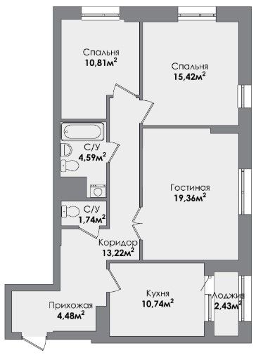 Трехкомнатная квартира 82.18 м2