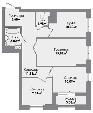 Трехкомнатная квартира 71.13 м2