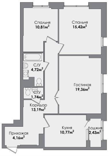 Трехкомнатная квартира 81.99 м2