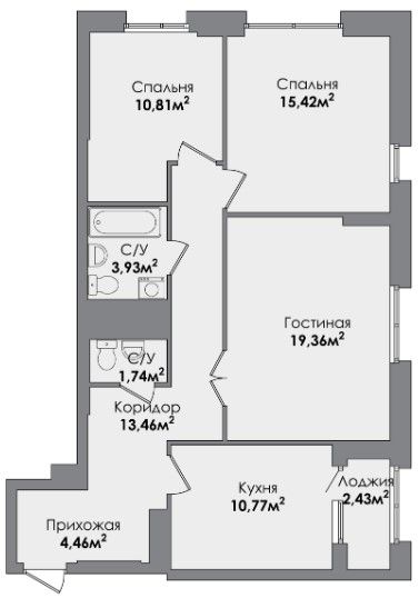 Трехкомнатная квартира 81.77 м2
