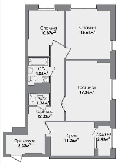 Трехкомнатная квартира 82.25 м2