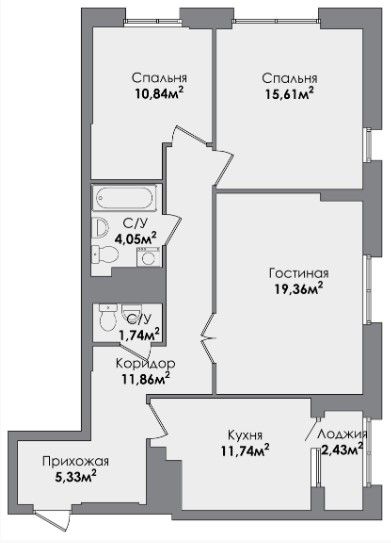Трехкомнатная квартира 80.7 м2