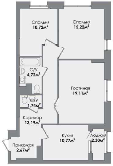 Трехкомнатная квартира 79.87 м2