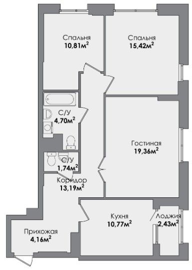 Трехкомнатная квартира 81.97 м2