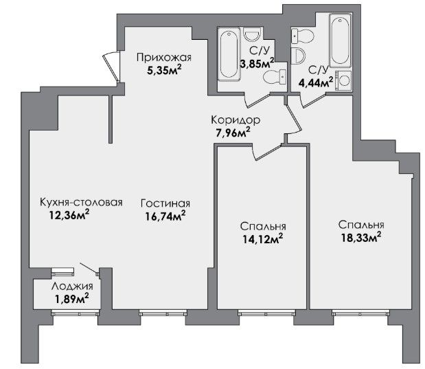 Трехкомнатная квартира 83.57 м2