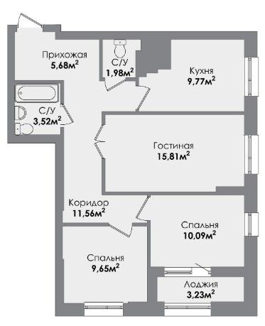 Трехкомнатная квартира 69.7 м2
