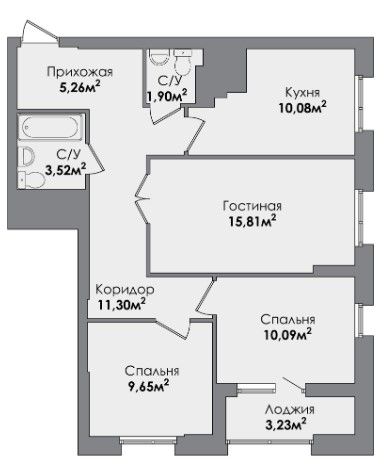 Трехкомнатная квартира 70.15 м2