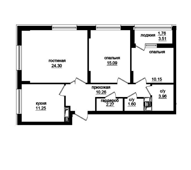 Двухкомнатная квартира 65.06 м2