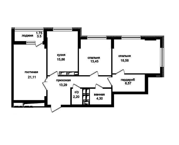 Трехкомнатная квартира 97.99 м2