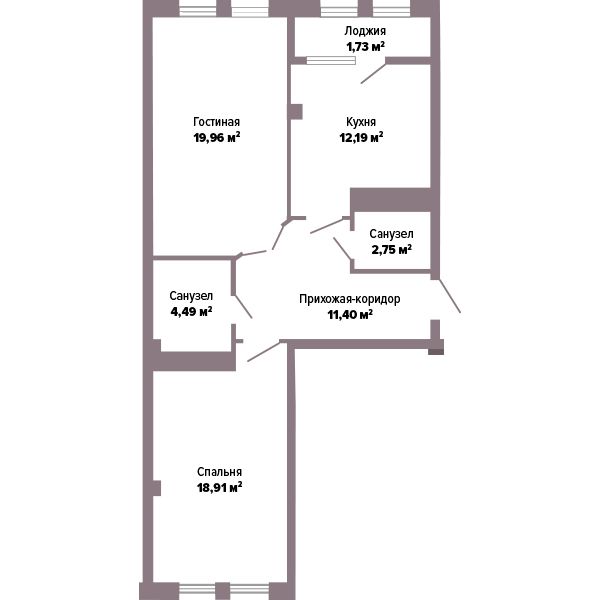 Двухкомнатная квартира 71.43 м2